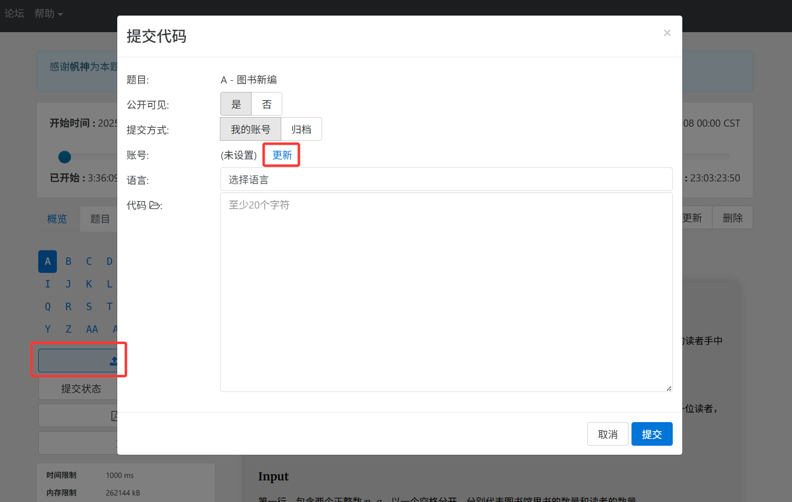 点击“提交”,再点击账号旁边的“更新”。(Atcoder 除外,直接看下面的步骤)