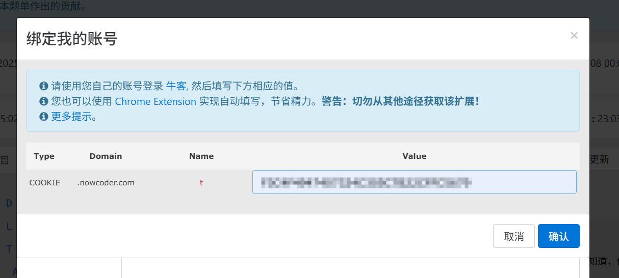 2025.09.16 二编:VJudge 支持使用扩展插件获取第三方平台账号,下面两个视频分别是官方教程和 LS学姐 录制的教程。如果照着这两个视频还不能正常提交代码再看下面的步骤。